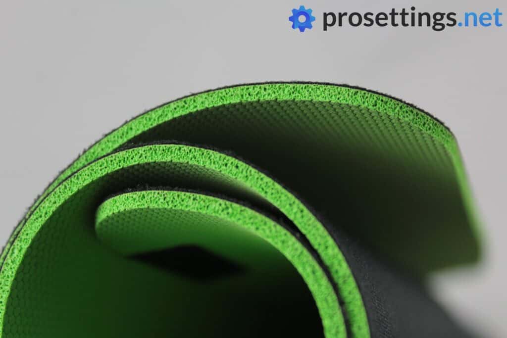 The foam isn’t the firmest I’ve ever seen but I didn’t really have any issues with the feet of a gaming mouse sinking into the pad so unless you’re using super small feet and applying tons of pressure I don’t see any reason to worry.