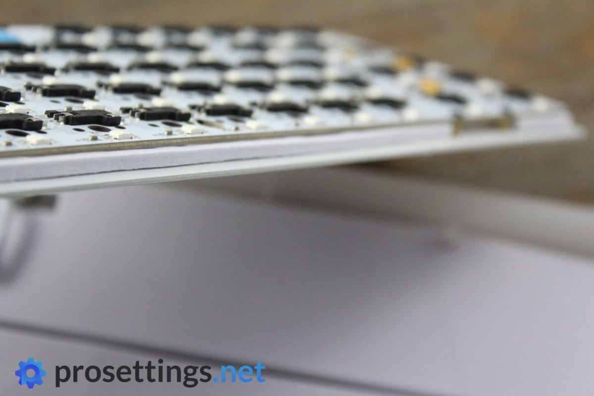 The PCB foam is rather thin and in two of the three boards I tested I found that it had folded inward when the switches had been installed, meaning that was ‘crushed’ and compacted by said switches. All of the switches worked, but it’s evidence of just how thin and almost inconsequential this foam is. If you ask me, this foam should be denser: that would prevent it from folding or bending and would do better at noise dampening.