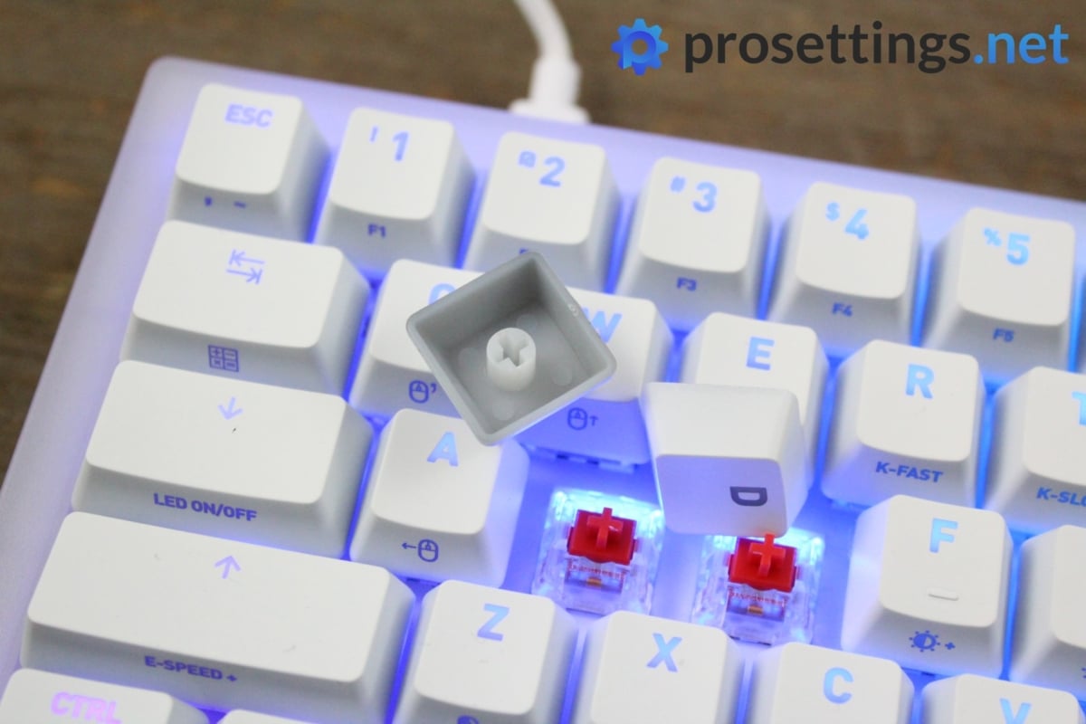 The K5 RGB Compact has a hotswap PCB, meaning that you can use pretty much any set of switches that you desire. This means that I won’t spend too much time on the switches that were in my board (seeing as you can just get the ones you like) but just to be quick: the board I tested has Kailh Red switches, and I’m not a big fan. They feel a bit scratchy and there’s some ping, and as far as linears go there are better options on the market at this price point if you ask me.