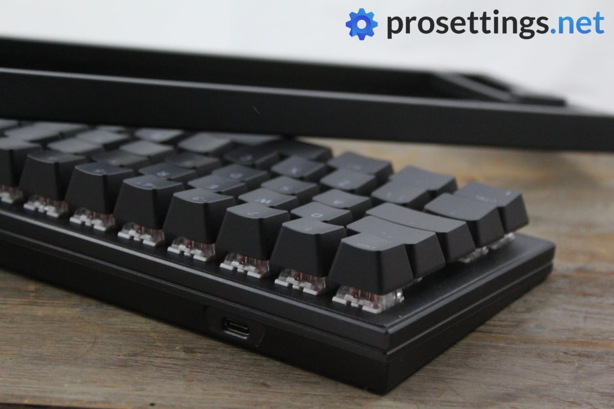 On the bottom of the case are four rubber feet along with two flip up feet should you want to place the keyboard at an angle. These do a fine job at keeping the board in place. The cutout for the USB-C cable is also wide enough to take a variety of custom cables.