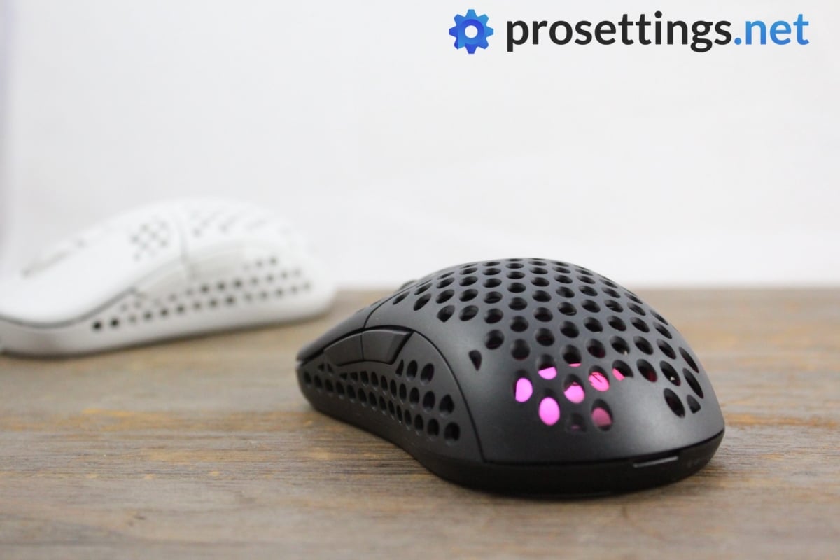 The matte coating feels great. My hands get a bit clammy when tryharding in games and I had no issues with the mouse (this goes for both the black and the white version) looking or feeling gross after a particularly intense match. I had no issues with grip during my testing either but that’s of course also down to the fact that there’s simply not a whole lot of contact between the actual coating and your hands/fingers; most of this mouse shell consists of holes.